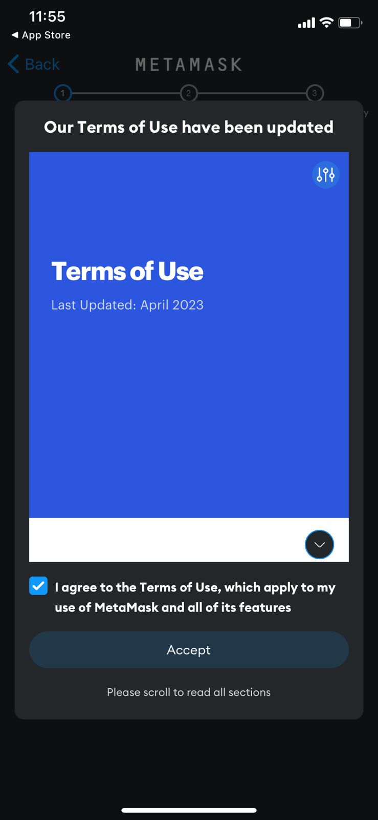 2. Review and accept the Privacy Policy and Terms of Service.