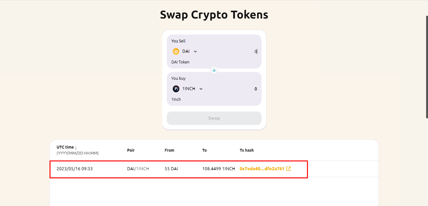 Enter the amount you want to swap, and in the lower section, you can see the number of tokens you want to swap, i.e. the receiving amount.